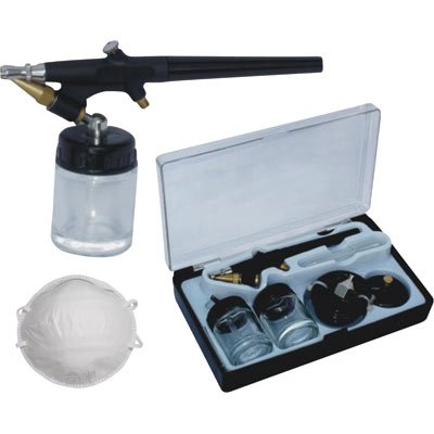 Power painter (220) 5-foot remote suction set, 0.8 mm round pattern tip, extra atomizer valve, 1-quart cup, cleaning brush.