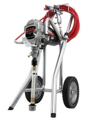 Wagner 3/4 HP twin stroke piston sprayer is dependable; ideal for everyone from handyman to full-time contractor. Utilizes same double-acting piston as professional sprayers. The 9150 features a rugged cart for big-job mobility - with removable handle for convenient transport and storage. Includes .015in. tip. Volts: 120, Amps: 7, HP: 3/4, Flow (GPM): 0.33, Max. PSI: 3,000, Hose Length (ft.): 50, Max. Tip Size (in.): .019